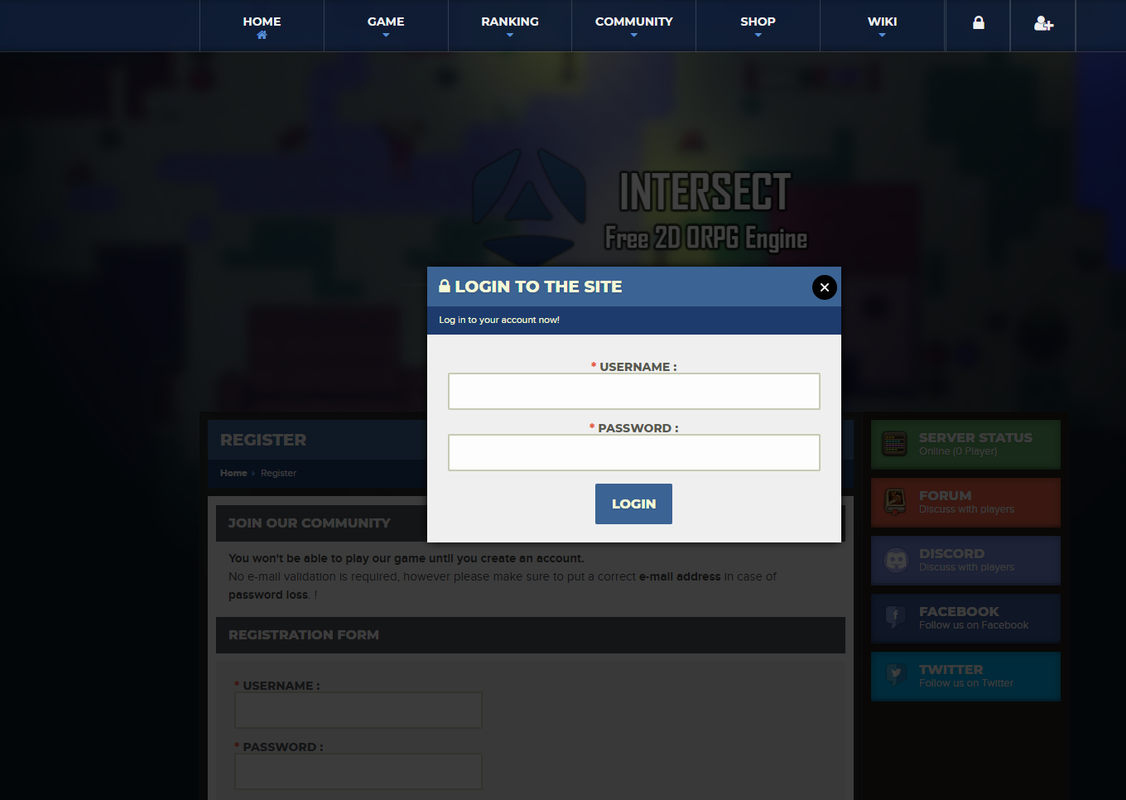 IntersectCMS uses the Intersect Engine API to process data as simply as possible through a web interface. Whether you use the sqlite or mysql database, this CMS will automatically adapt itself thanks to the game engine API. Part of the CMS uses a MySQL database, so it is necessary to have one for the proper functioning of the site's functionalities.