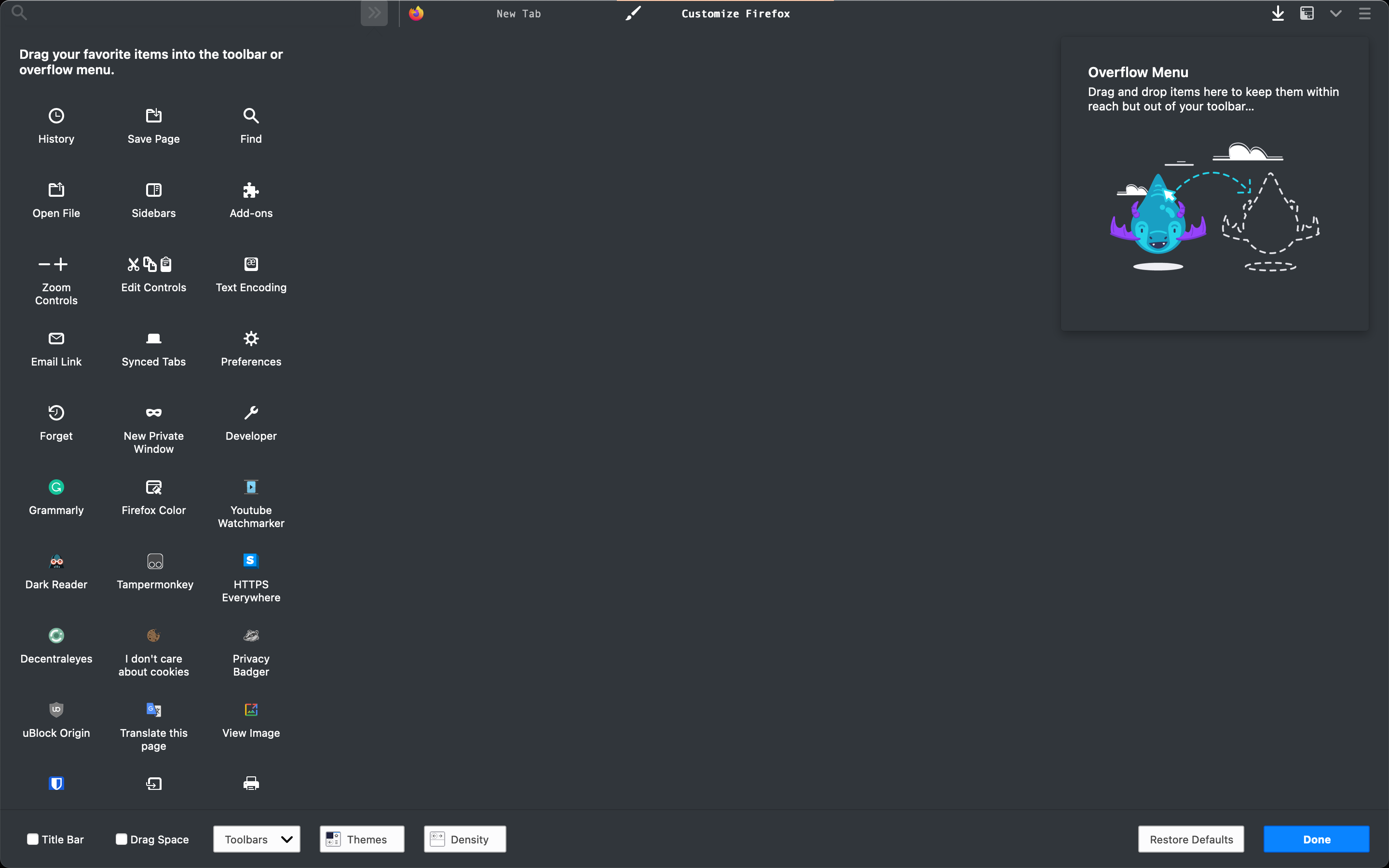 Finally add/remove shortcuts/extensions/spaces via drag and drop.
