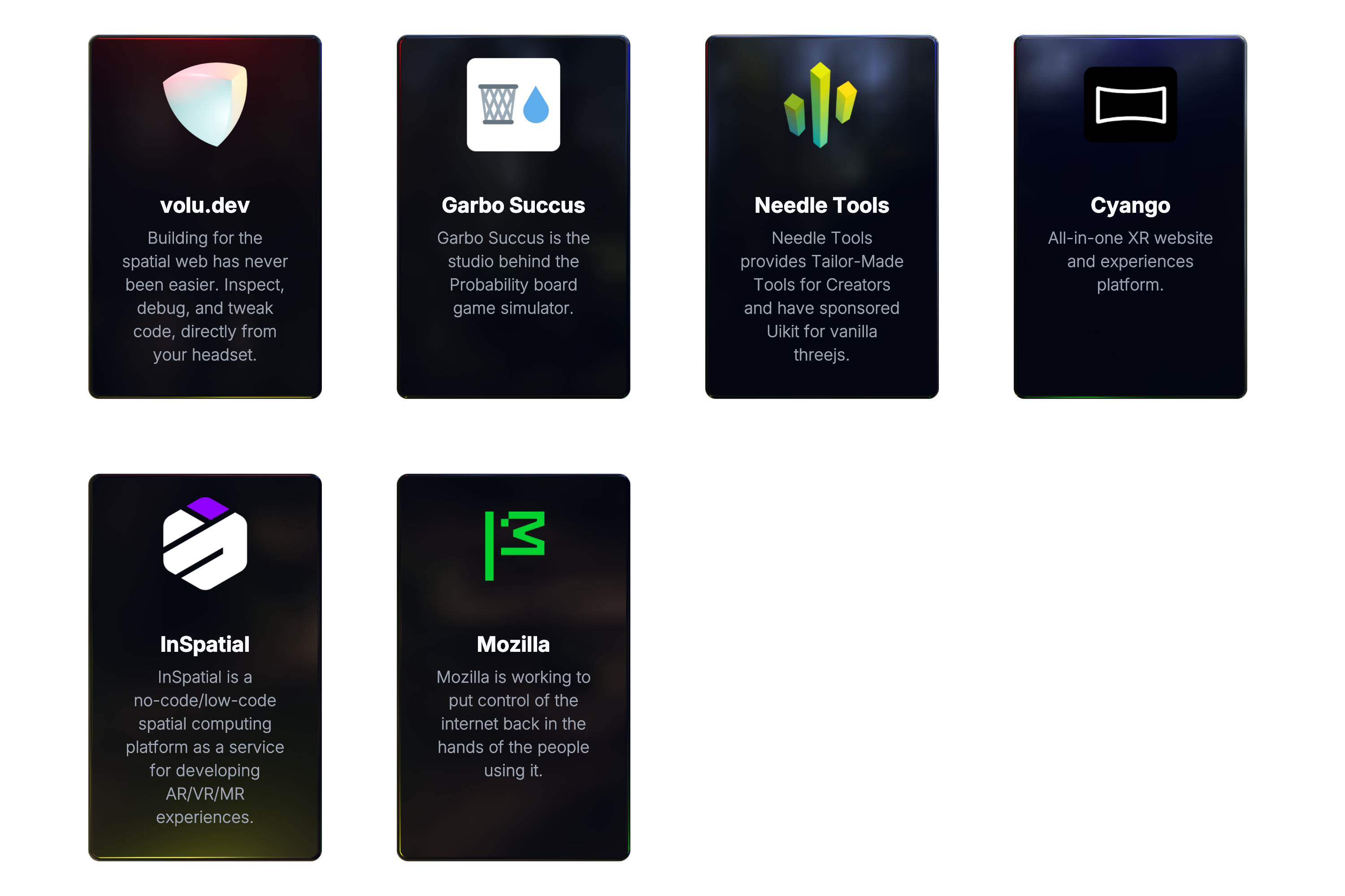 npm create @react-three my-app --package-manager pnpmThis project is supported by a few companies and individuals building cutting edge 3D Web & XR experiences. Check them out!