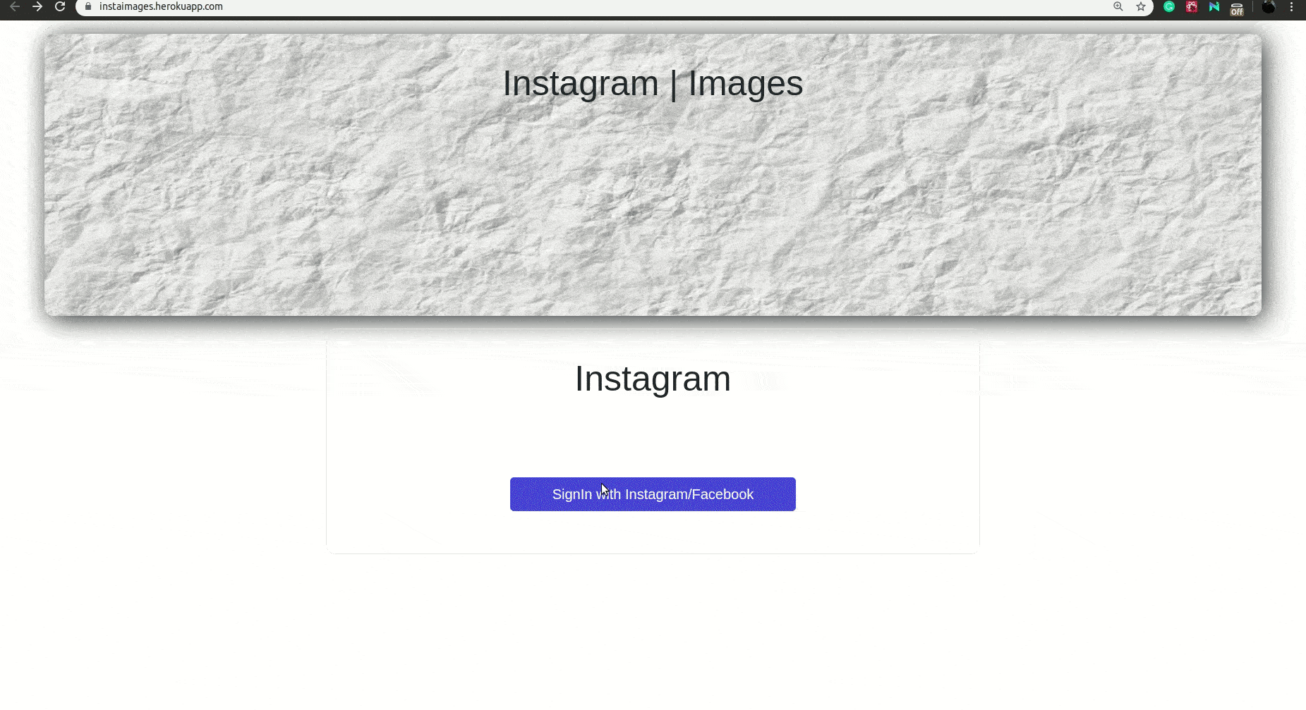 The website consists of grid of all the images from the user’s Instagram profile. In addition to this, the user shall be able to share his/her website created with their friends using their unique URL.