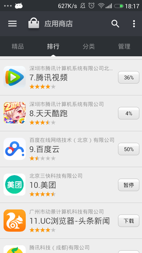 ##高仿大米应用市场 一款高仿MIUI V5版本手机应用市场 - 功能包括: - App列表的显示 - app详情页 - App下载,自动安装 - 多线程断点下载 - 通知栏显示 - 主要技术点: - 工厂设计模式FragmentFractory - 线程池的回收使用 - 三级缓存的使用(网络、本地、内存) - ListView优化,代码的抽取 - 多线程多任务下载 - 观察者模式监听下载任务的进度变化 - 自定义控件的使用(感谢鸿洋的大神的博客) - 其他MaterialDesign控件的使用(Toolbar,DrawerLayout等等)