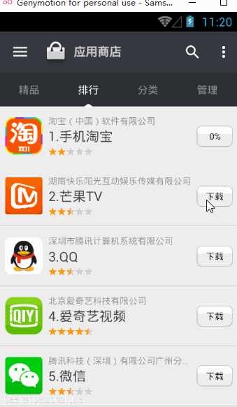 - "高仿大米应用商店"是我的第一个开源项目,旨在在写代码的过程中学习知识,积累错误。目前V1.0实现了下载显示基本功能,以后会继续优化,