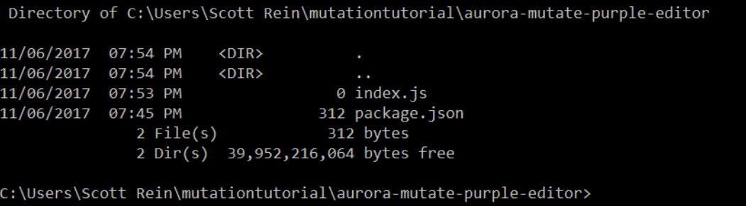 Navigate in your file system to where you would like your npm package to be stored. Then create a folder called aurora-mutate-nameOfMutation. It is important to have the prefix aurora-mutate because that is how it will end up in our mutation store.